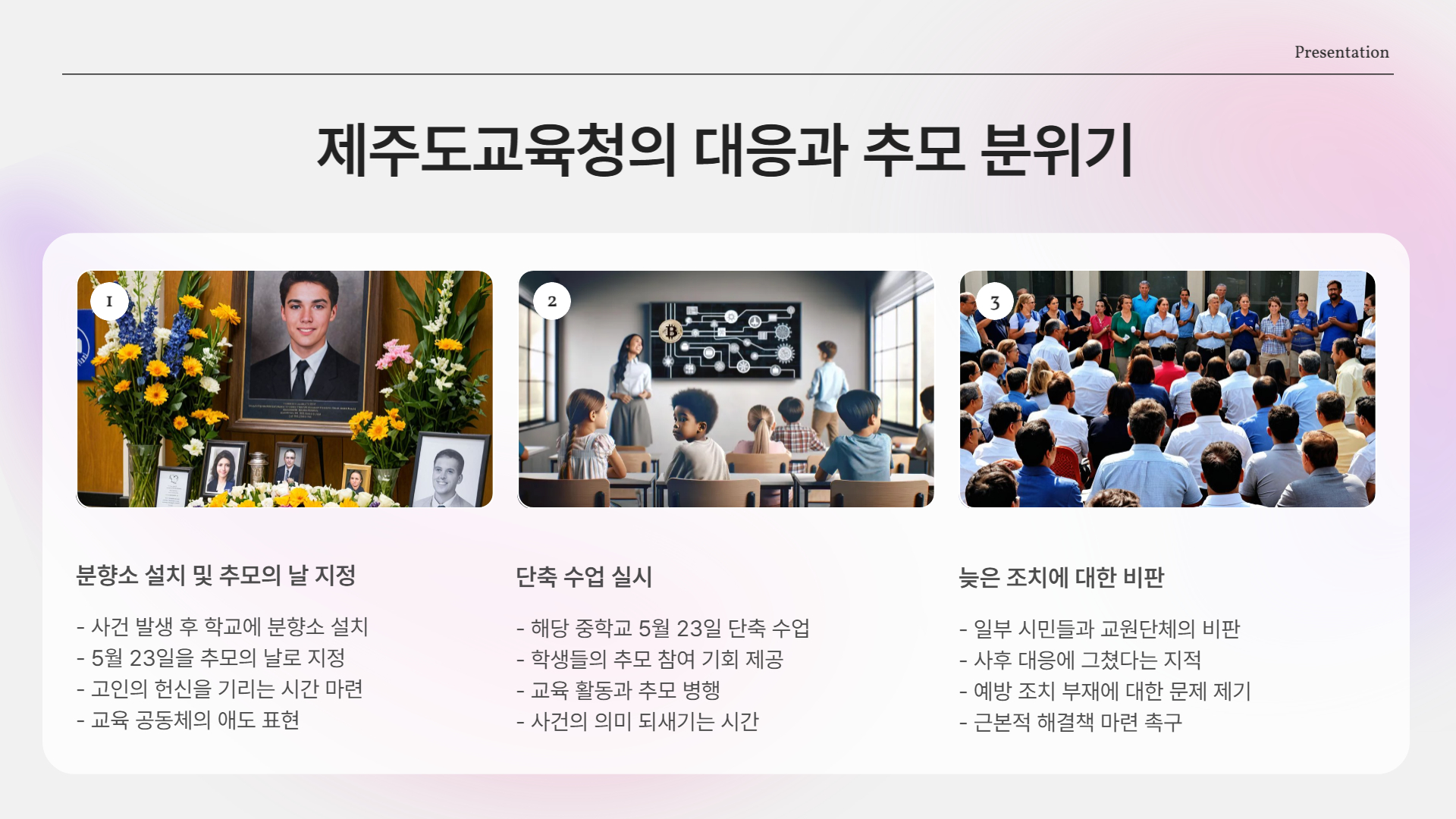 🏫 3. 제주도교육청의 늦은 조치와 추모 분위기