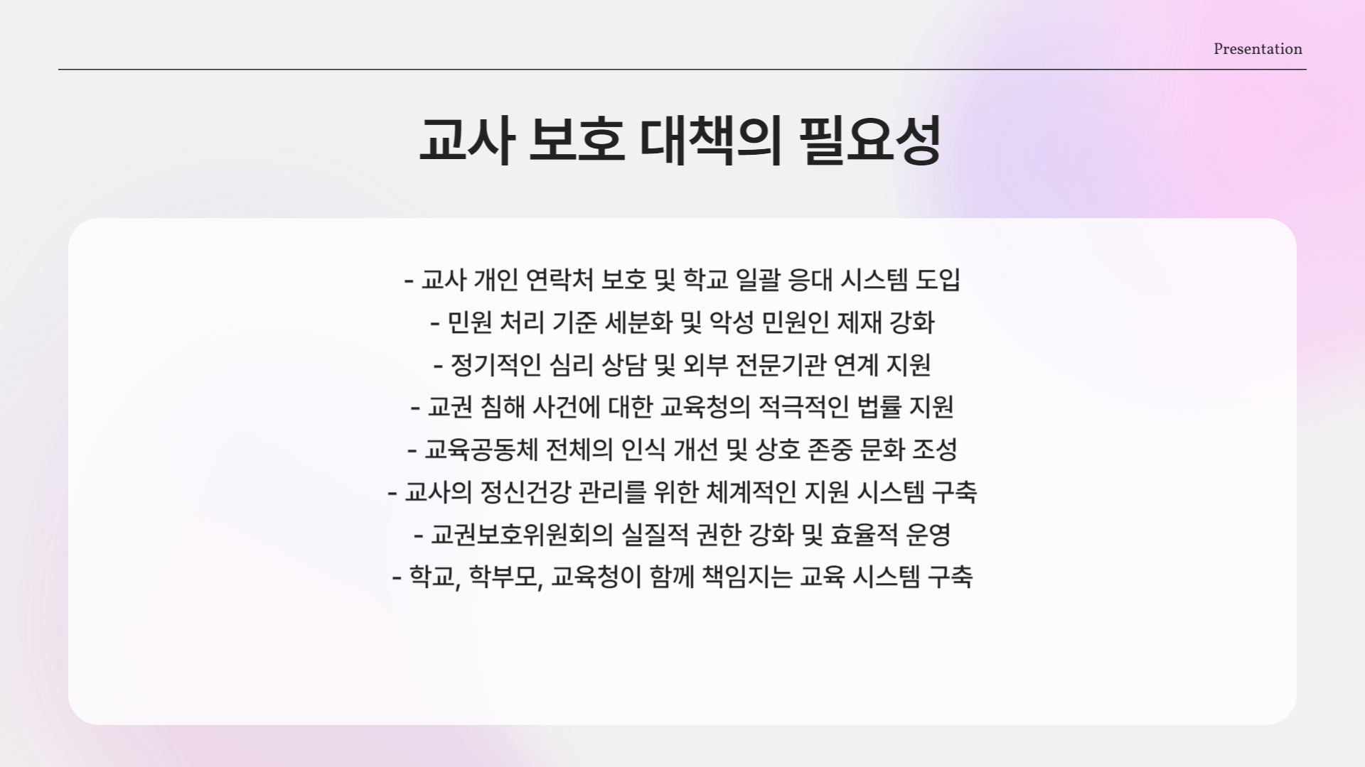 📢 8. 교사 보호 대책, 더 이상 미룰 수 없다