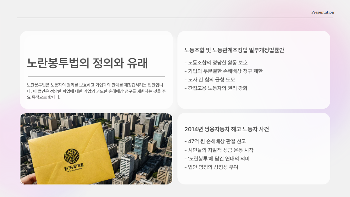 오늘은 노란봉투법의 유래부터 핵심 내용, 그리고 찬반 논란까지 쉽고 명확하게 정리해드립니다.